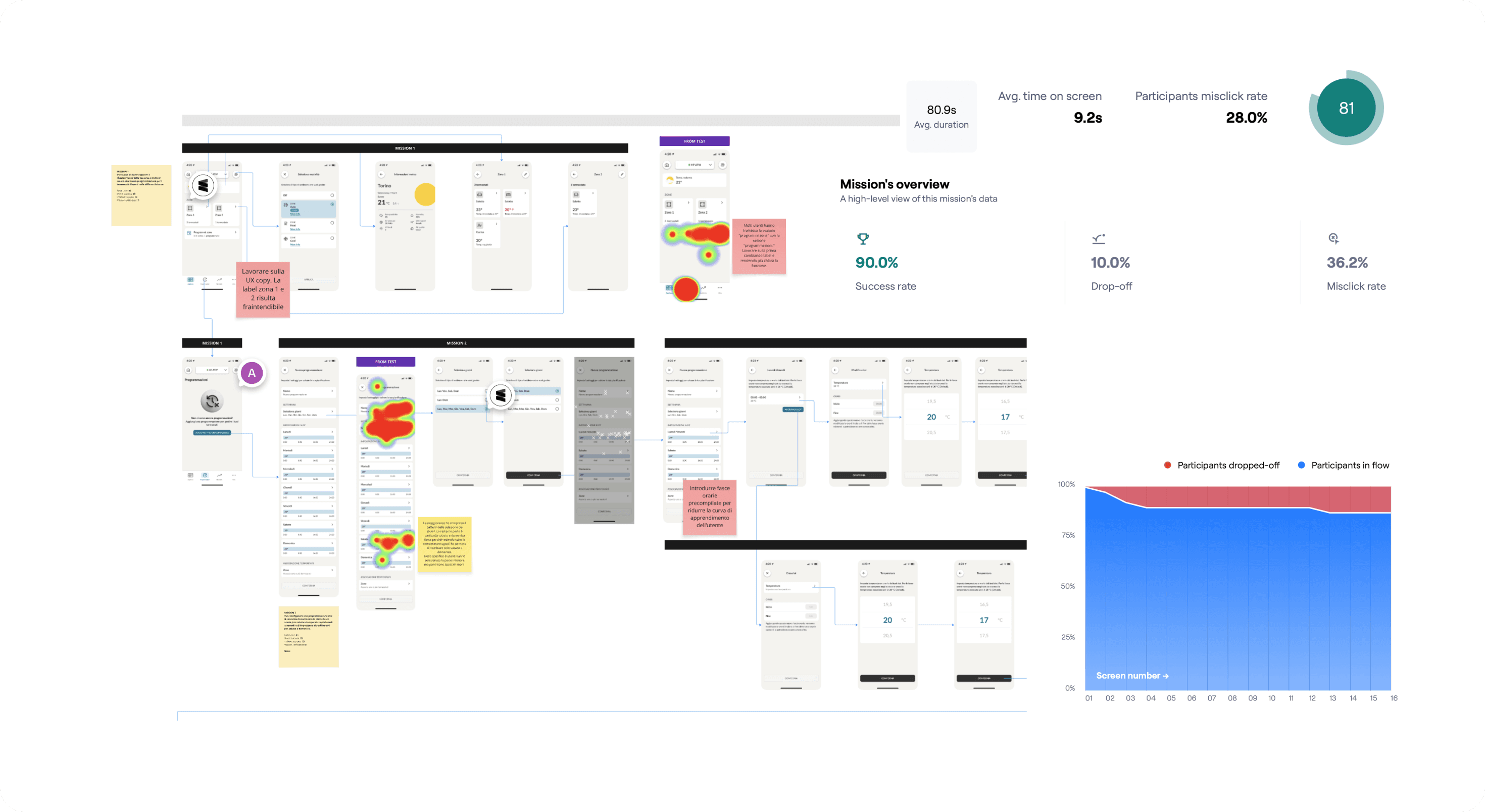 We reviewed quantitative data (success rate, time on screen, misclicks, drop-offs, usability score) and qualitative inputs from open-ended questions and screen recordings.