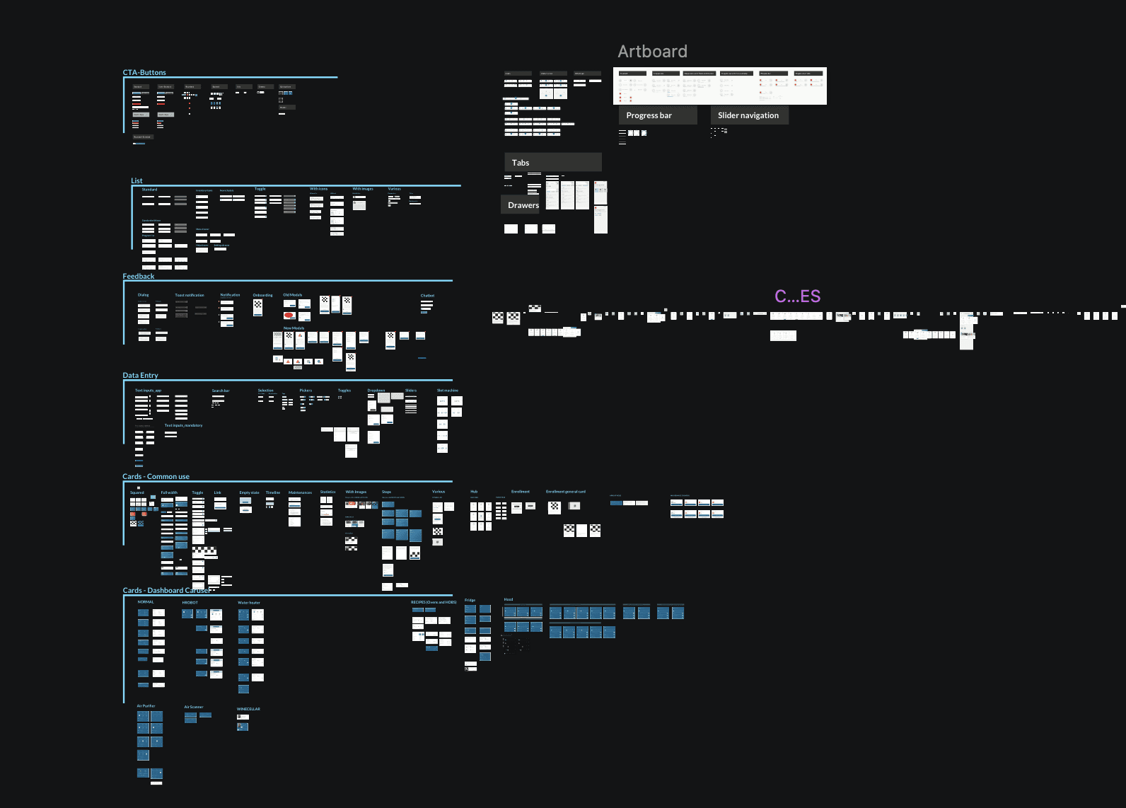I began by auditing all existing screens and components — over 250 tile variants in the Sketch library. I mapped UI patterns, identified inconsistencies, and clustered related elements to highlight redundancies.