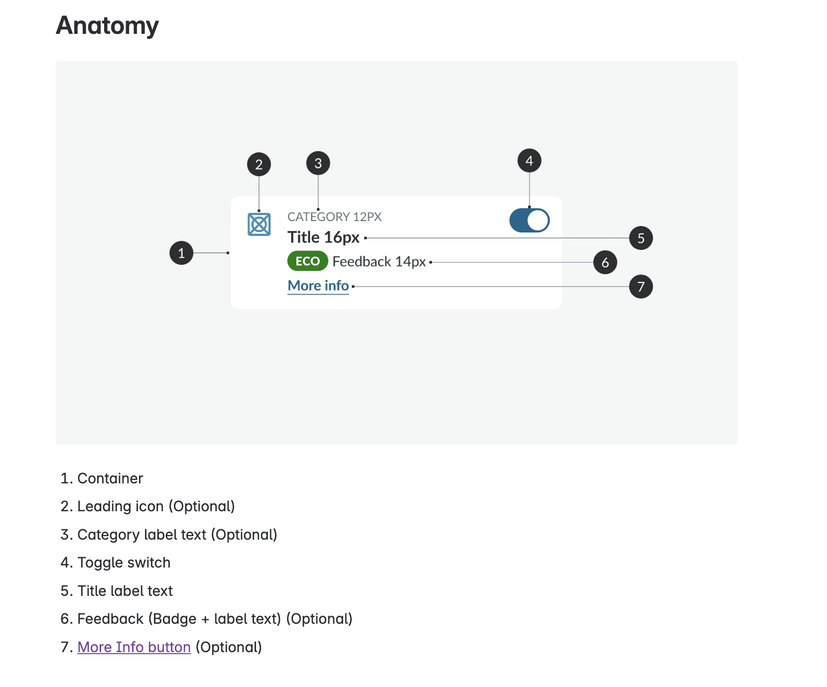 The documentation is structured into six key sections to ensure clarity and consistency: Anatomy, Behavior, Patterns, States, Design Specs and Usage (Do & Don’ts).